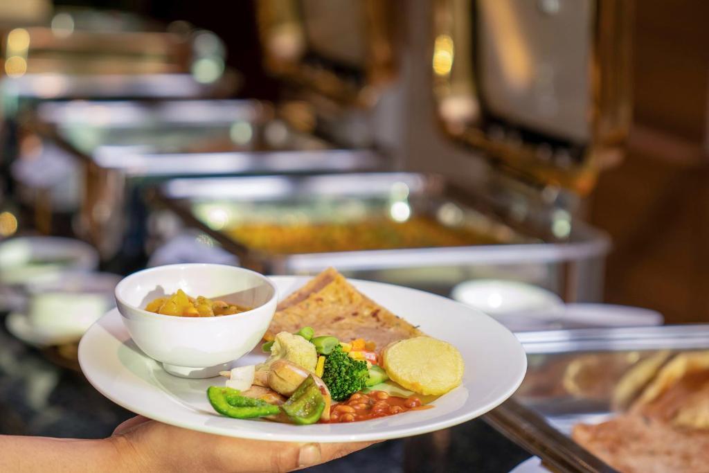 Best Western Plus Kathmandu Hotel is a highly-rated 4-star property located on Vijay Chowk in the Pingalasthan area of Kathmandu, just a convenient five-minute drive or approximately 1 kilometer from Tribhuvan International Airport and situated within a 14 to 16-minute walk of the iconic Pashupatinath Temple, with Boudhanath Stupa about 3.6 kilometers away and Kathmandu Durbar Square approximately 5.6 kilometers from the hotel . The hotel opened in 2025 and features 84 modern rooms and suites, including options such as Standard Rooms with one king or two twin beds, Executive Suites, and Suites with jetted tubs, all equipped with complimentary wireless internet access, air conditioning, flat-screen smart TVs with cable or digital channels, minibars, coffee and tea makers, in-room safes, private bathrooms with rainfall showers and free toiletries, and some rooms offering city, river, mountain, or pool views . Amenities at the property include an outdoor heated swimming pool with sun loungers and umbrellas, a fully equipped fitness center with treadmill, rowing machine, stationary bike, and weightlifting equipment, a full-service spa offering massages and treatments, a sauna, a steam room, a business center with meeting and conference facilities (557 square meters of event space including two meeting rooms), and a gift shop or newsstand, while complimentary services include free self-parking, free valet parking, free WiFi throughout the hotel, and a free full buffet breakfast served daily from 7:00 AM to 10:00 AM featuring local Nepalese dishes, Indian dishes, cereals, fruit juice, fresh fruit, breakfast rolls, eggs with sausages, and Western options .