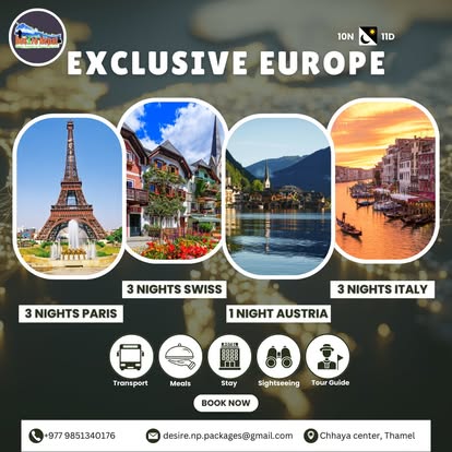Desire Nepal Treks Travels & Tours is a travel and tourism company based in Nepal that provides a range of services for both domestic and international travelers. The company typically offers trekking and hiking packages, guided tours, holiday and cultural travel experiences, hotel bookings, transportation arrangements, and visa assistance. It focuses on delivering safe, reliable, and well-organized travel solutions, especially for those exploring Nepal’s natural and cultural attractions. Desire Nepal Treks Travels & Tours aims to provide personalized and affordable travel services, ensuring comfortable and memorable journeys for individuals, families, and adventure groups.