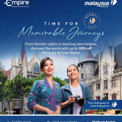 Empire Travel Nepal is a travel and tourism company that provides a wide range of services for both domestic and international travelers. The company typically offers flight ticket booking, hotel reservations, holiday and tour packages, trekking and adventure travel arrangements, transportation services, and visa assistance. It focuses on delivering reliable and well-organized travel solutions by helping customers plan and manage their journeys efficiently. Empire Travel Nepal aims to provide convenient, affordable, and personalized travel services, ensuring smooth and enjoyable experiences for individuals, families, and group travelers.