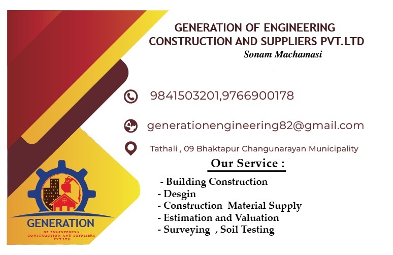 Generation of Engineering Construction and Suppliers Pvt. Ltd. is a Nepal-based company involved in construction, engineering, and supply services. It focuses on providing solutions such as building construction, material supply, and project support for infrastructure development. The company aims to deliver reliable, efficient, and quality services to meet client and industry needs.