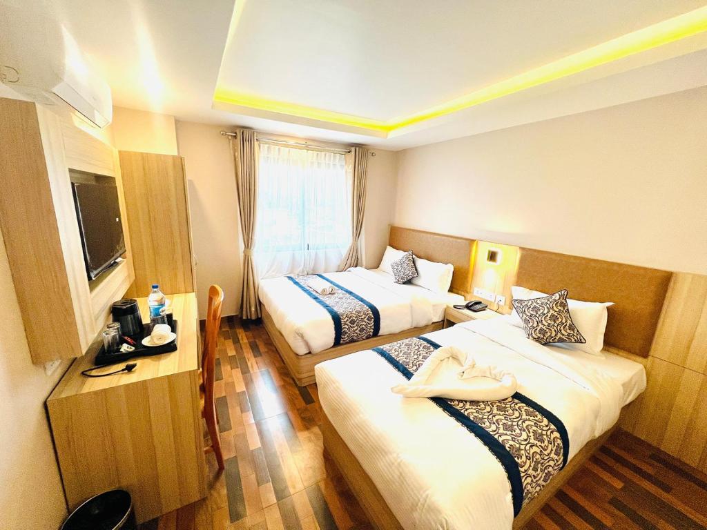 Hotel Annapurna Palace is a budget-friendly 2-star property located on Battisputali Road in the Gaushala area of Kathmandu, Nepal, just a 13-minute walk from the sacred Pashupatinath Temple and approximately 1.7 miles from Boudhanath Stupa, with Tribhuvan International Airport located only 1.2 to 2 miles away . The hotel features air-conditioned guestrooms including Single Rooms (97 sq ft), Double Rooms (108 sq ft), Twin Rooms (119 sq ft), and Double or Twin Rooms (183 sq ft), each equipped with a desk, flat-screen TV, private bathroom with shower and free toiletries, and some rooms offering a balcony with city views . Amenities at the property include an on-site restaurant serving Indian and Local cuisine, a bar, room service, daily housekeeping, a 24-hour front desk with concierge services, and family-friendly accommodations, while free self-parking is available on-site . The hotel enforces a check-in time after 12:00 PM and check-out before 12:00 PM, pets are not permitted on the premises, and the property does not accommodate bachelor(ette) or similar parties . Guest reviews have rated the property 8.7 out of 10 based on verified guest feedback, with particular praise for the convenient location near major temples and the airport, while it is important to note that the hotel does not offer a swimming pool or elevator, and parking is reportedly unavailable according to some sources . Please note that there is a much larger and more established hotel called "Hotel de l'Annapurna" (also known as Hotel Annapurna) located on Durbar Marg in central Kathmandu, which is a 4-star property with 150 rooms, an outdoor pool, fitness center, five restaurants, and banquet facilities, and that hotel remains open and operational as a completely separate establishment from Hotel Annapurna Palace .