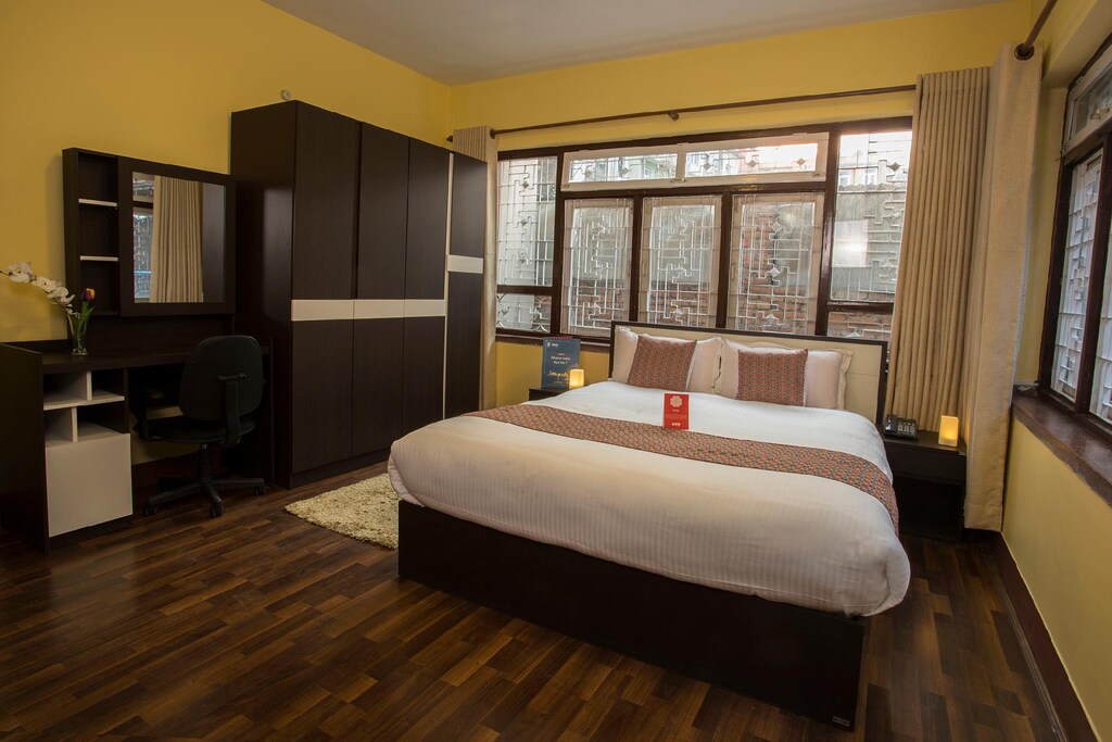 Hotel Green Milarepa is a budget hotel in Thamel, Kathmandu, located on a quiet street next to Garden of Dreams . It offers clean, spacious rooms with wooden decor, free WiFi, flat-screen TVs, and comfortable bedding . Guests enjoy complimentary breakfast, an on-site restaurant, and a pleasant open terrace garden . Amenities include bicycle rental, laundry service, and helpful staff . The hotel is within walking distance of Thamel's shops, restaurants, and nightlife, with easy access to transport for Tribhuvan International Airport . Guests praise the location, cleanliness, and value .