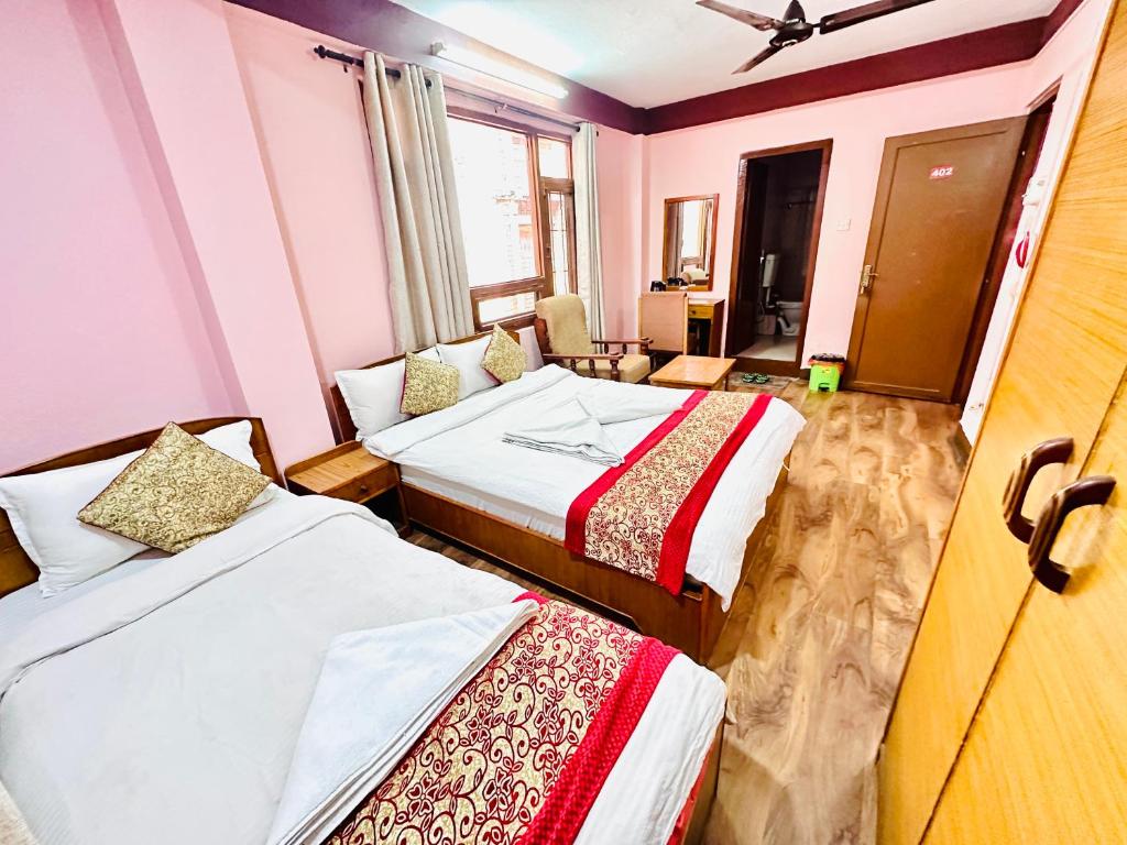 Hotel Green Orchid is a budget‑friendly hotel/guesthouse in the Thamel area of Kathmandu, Nepal, situated on Paknajol Marg within walking distance of the Thamel market, shops and restaurants. It offers simple, comfortable rooms — some with private bathrooms and free Wi‑Fi — along with essential services like a 24‑hour front desk, airport shuttle, on‑site restaurant and terrace. The property is appreciated for its excellent central location, friendly staff and good value for money, making it a practical choice for travellers looking to explore the city’s attractions such as Garden of Dreams, Narayanhiti Palace and Durbar Square on foot. Guest reviews often mention the hotel’s quiet, convenient setting in Thamel, helpful service and breakfast options, which add to a comfortable stay for both short visits and longer stays in Kathmandu.