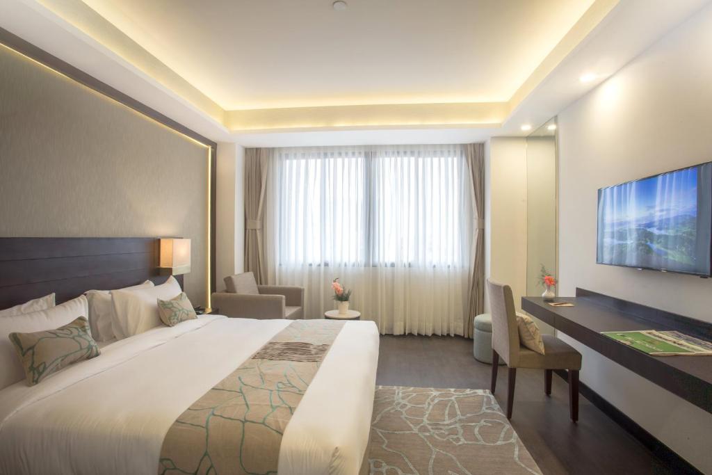 Comfortable Accommodations: Hotel Mulberry in Kathmandu offers family rooms with air-conditioning, private bathrooms, and modern amenities. Each room includes a work desk, mini-bar, and free WiFi, ensuring a pleasant stay. Exceptional Facilities: Guests can enjoy a rooftop swimming pool, spa facilities, fitness center, and a lush garden. Additional amenities include a steam room, wellness packages, and a fitness room, catering to all leisure needs. Dining Experience: The hotel serves international cuisine with a variety of breakfast options, including continental, buffet, and vegetarian. An on-site restaurant and bar provide ample dining choices, complemented by free WiFi throughout the property. Prime Location: Located 3.1 mi from Tribhuvan International Airport, Hotel Mulberry is close to attractions such as Hanuman Dhoka (15-minute walk), Kathmandu Durbar Square (0.6 mi), and Garden of Dreams (6-minute walk). Guests appreciate the convenient location and excellent service.