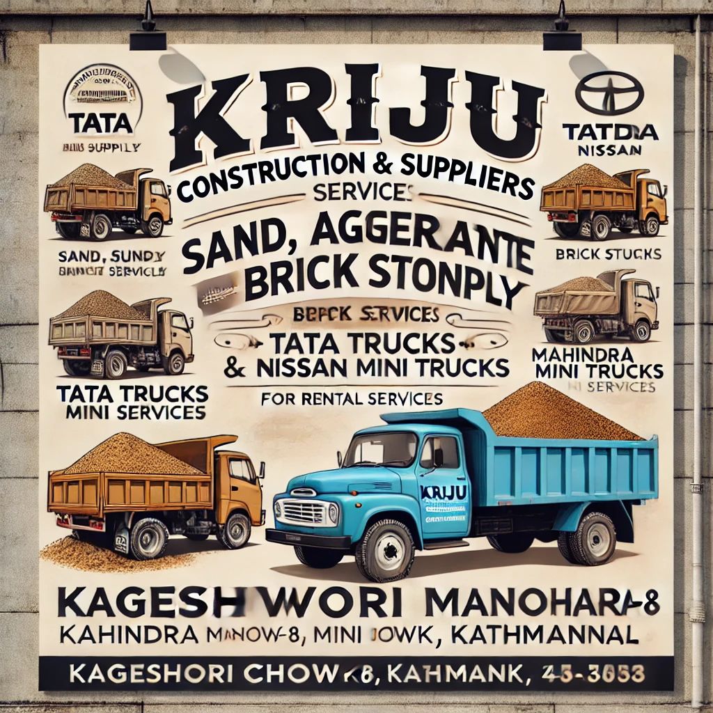 Kriju Construction & Suppliers Pvt. Ltd. is a Nepal-based construction company located in Kathmandu.It provides services related to construction works as well as the supply of building materials.The company operates as a local contractor and supplier, supporting residential or small-scale infrastructure projects.