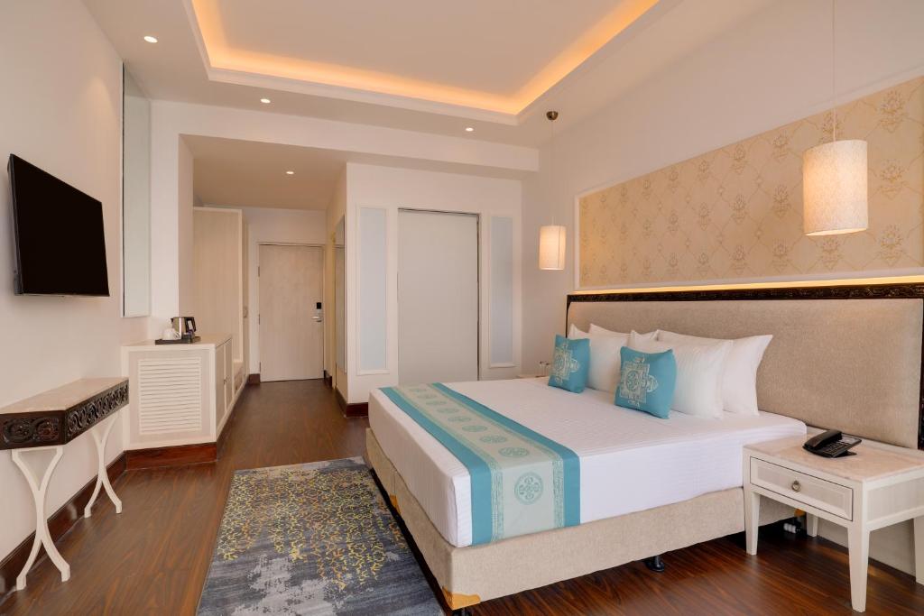 Lemon Tree Premier Budhanilkantha is a modern 5-star luxury hotel that opened its doors in 2024, nestled in the serene hills of Budhanilkantha, just on the outskirts of Kathmandu . Located approximately 45 minutes from Tribhuvan International Airport, the property is strategically positioned near the sacred Sleeping Vishnu (Budhanilkantha Temple) and offers a peaceful retreat away from the bustling city center of Thamel . The hotel features 102 elegantly appointed rooms, including Deluxe, Club, Executive, Premier Rooms, and Presidential Suites, all designed with contemporary aesthetics and equipped with modern amenities such as flat-screen TVs, air conditioning, mini-bars, and complimentary high-speed Wi-Fi . Many rooms offer stunning panoramic views of the city and the majestic Himalayan ranges, creating a picturesque backdrop for your stay . Guests can indulge in a variety of world-class facilities, including a stunning rooftop infinity pool, a state-of-the-art 24-hour fitness center, and the rejuvenating Fresca Spa, which features a sauna, steam room, and massage services . The hotel boasts multiple on-site dining venues, including a main restaurant serving international cuisine and a noodle bar, with breakfast options ranging from American and Continental to Halal, Kosher, and Vegan selections . With a guest rating consistently around 9.0/10, the hotel is highly praised for its cleanliness, spacious rooms, exceptional staff hospitality, and tranquil location away from the city noise, though guests recommend arranging taxis for trips into central Kathmandu .