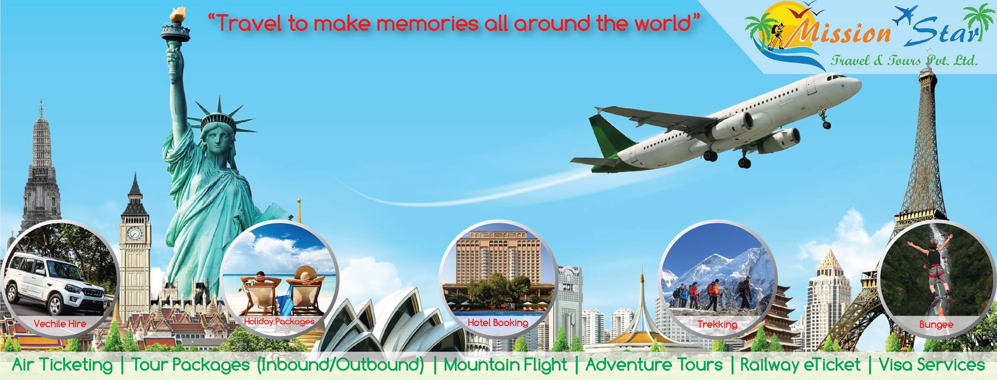 Mission Star Travel is a travel and tour agency based in Kathmandu, Nepal, offering a variety of travel-related services for both domestic and international clients. The company typically provides services such as flight ticket booking, hotel reservations, holiday packages, visa assistance, and customized tour planning. It focuses on delivering convenient and affordable travel solutions for individuals, families, and group travelers. Like many travel agencies in Nepal, Mission Star Travel aims to support both leisure and business travel needs, including cultural tours, pilgrimage trips, and adventure travel experiences such as trekking and sightseeing across Nepal.