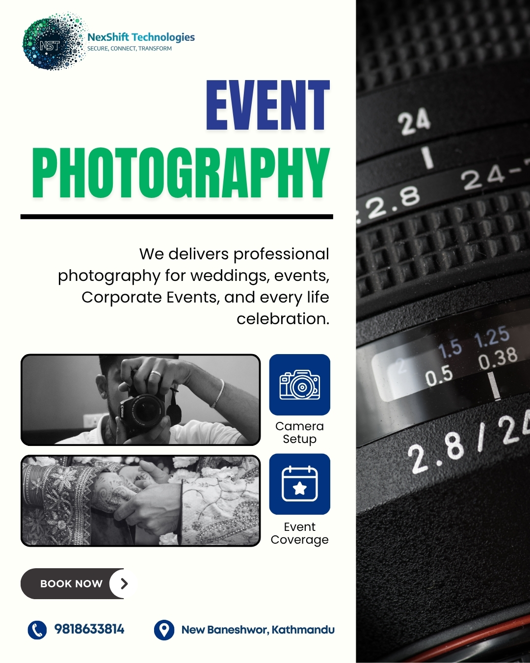 NexShift Media & Events is a dynamic media and event production company known for delivering creative and impactful visual experiences. Specializing in event management, wedding coverage, photography, and videography, NexShift blends innovative ideas with professional execution to bring every project to life. Their team focuses on capturing meaningful moments with a modern, cinematic touch while ensuring smooth and well-organized events. With a strong commitment to quality, creativity, and client satisfaction, NexShift Media & Events continues to grow as a reliable choice for both media production and event solutions in Nepal.