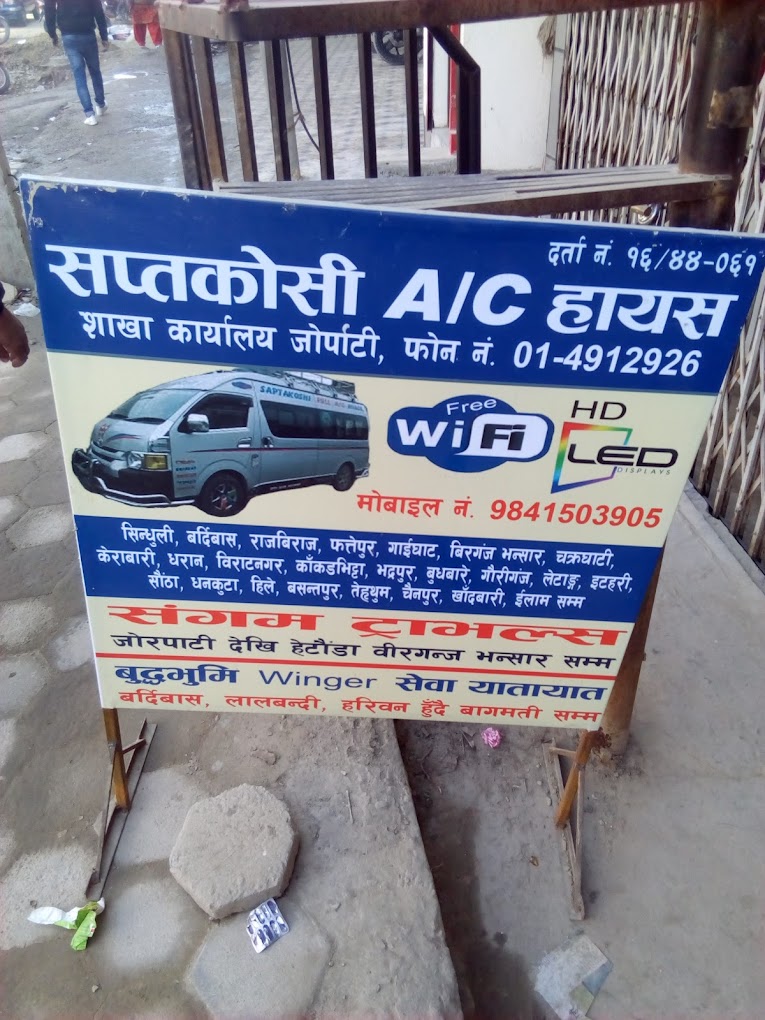 Sangam deluxe ticket booking counter, Jorpati-Sundarijal Road, Gokarneshwor 44600, Nepal,Kathmandu,Nepal